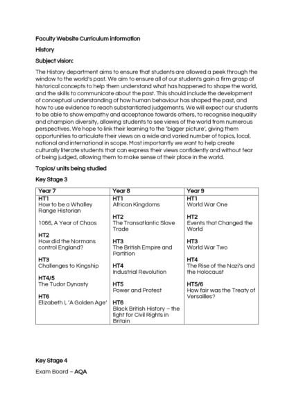 History Curriculum Information 2025/26